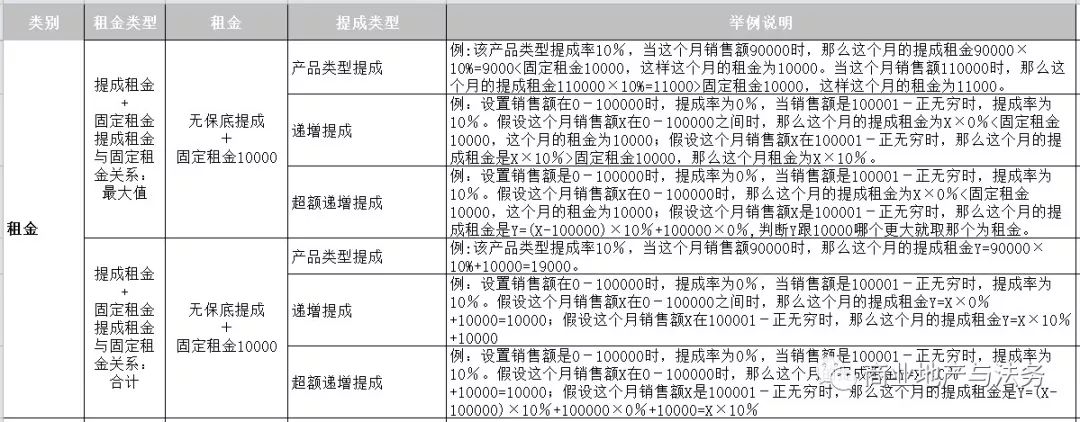 比如有朋友就問我,公司投拓上會時把項目說成天降福瑞,要是錯過了老板簡直是自取滅亡。這到底對不對?再有基金投行的朋友問我,有的項目能不能投資?算賬的時候看起來簡直一本萬利,好到不敢相信。對于以上問題我沒法直接回答,通常我會問一問租金回報如何?或者問問項目的租金是如何設立的,因為我覺得如果能夠理解租金設立(因),那么就可以推測出這個項目的前景到底如何(果)。否則你不如直接看他們的PPT就好啦。首先我們要理解,商業(yè)地產(chǎn)(購物中心類)是如何設定租金的。即按照約定的租金數(shù)額,由乙方按指定時間交付。2、提成租金(也稱為:扣率租金、扣點租金或抽成租金)也稱抽成扣率租金,即按照一定總銷售額的比例來計算商場的抽成租金,主要分為兩類:一是基礎扣點,這是在簽訂合約的時候就在合約中列明的,二是臨時活動(如臨促、中庭促銷等)的扣點。