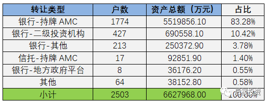 按轉(zhuǎn)讓及受讓主體類型分(只考慮有明確債權(quán)金額部分):