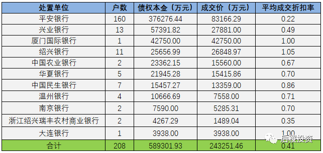 另未透露債權(quán)金額成交明細如下: