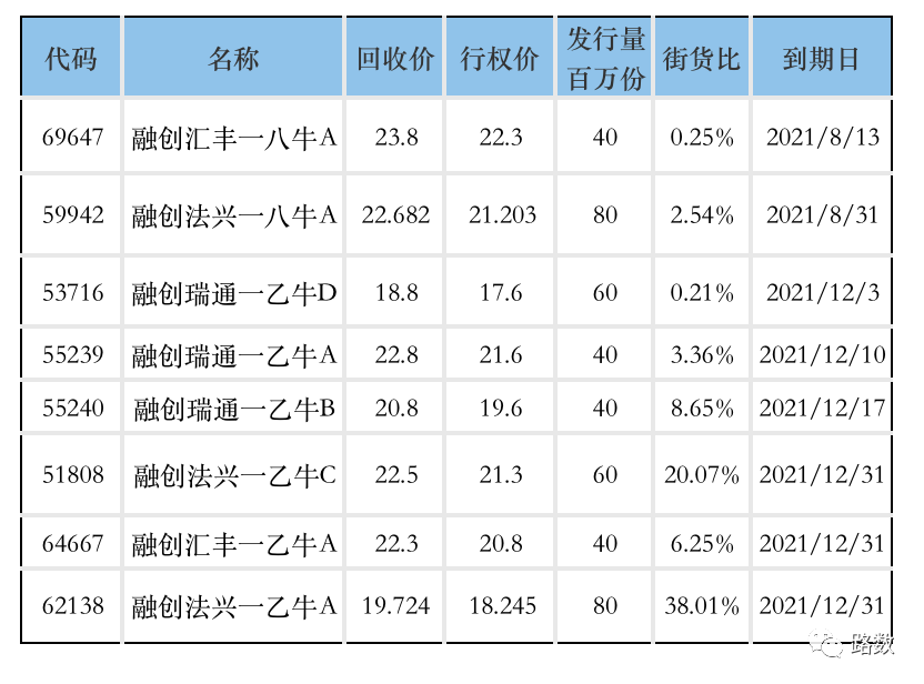 其他牛證或多或少還有點剩余價值。融創海通一牛八A(61766.HK)是最慘的,每股剩余價值為0。