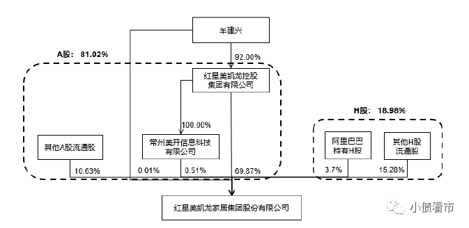 從股權結構上來看,紅星美凱龍的控股股東為紅星控股,持股比例為55.16%,穿透后公司實控人為自然人車建興。