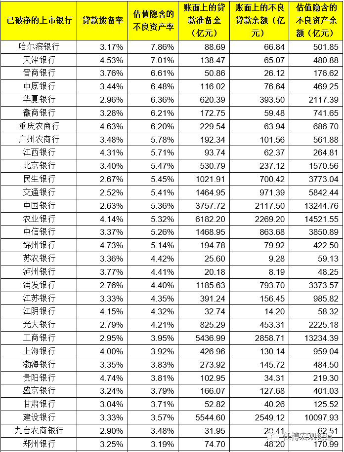 (三)38家A股上市銀行:僅11家未破凈,近75%的A股上市銀行破凈