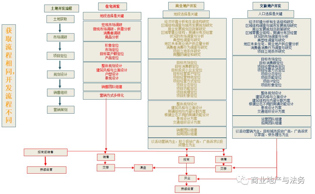 (五)商業(yè)地產(chǎn)、文旅開發(fā)比住宅開發(fā)多出開業(yè)、運(yùn)營(yíng)、管理三個(gè)環(huán)節(jié)。