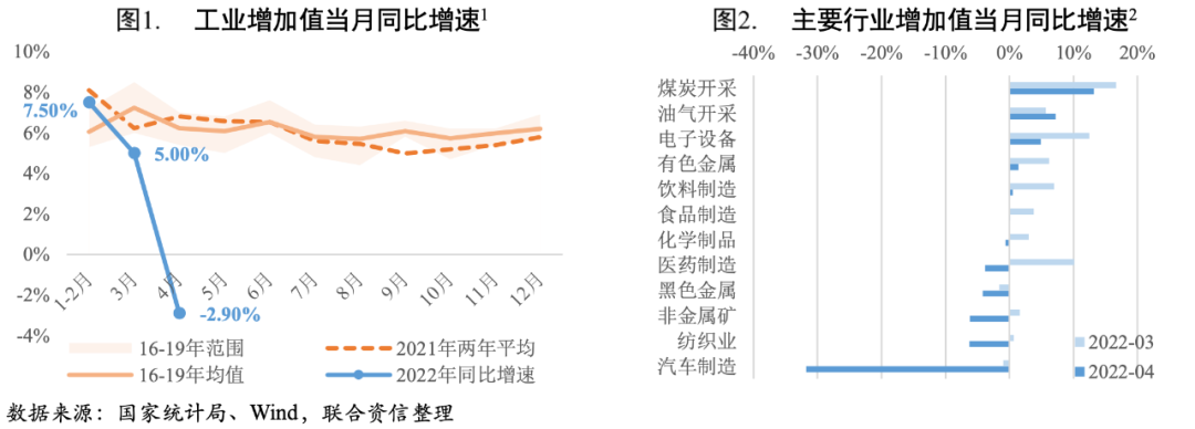汽車制造業(yè)生產(chǎn)受到疫情較大沖擊。行業(yè)方面,得益于能源、原材料保供穩(wěn)價(jià)政策持續(xù)推進(jìn),煤炭開采、油氣開采等采礦業(yè)增加值增長相對(duì)穩(wěn)定;制造業(yè)增加值回落明顯,受疫情影響較大,其中電子設(shè)備制造業(yè)增加值仍實(shí)現(xiàn)了同比增長;飲料、食品制造業(yè)增加值同比小幅增長,生活必需品供應(yīng)保持充足穩(wěn)定;而汽車制造業(yè)增加值同比大幅下降超過30%,受上海、長春地區(qū)汽車供應(yīng)鏈以及整車廠商停工停產(chǎn)影響較大。
