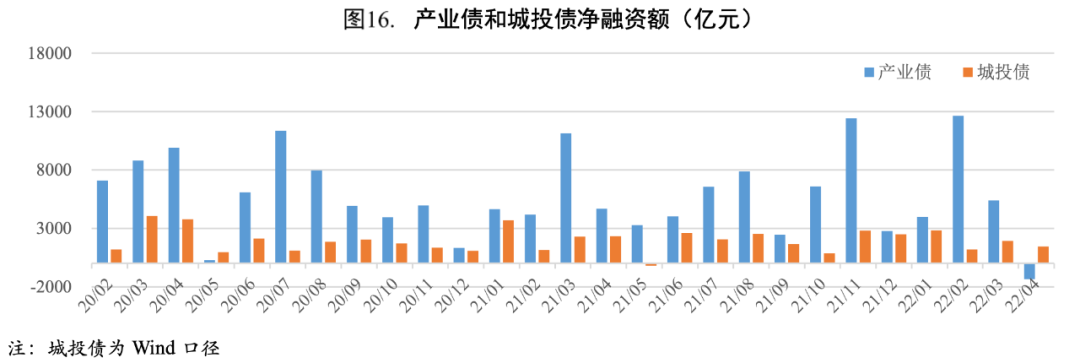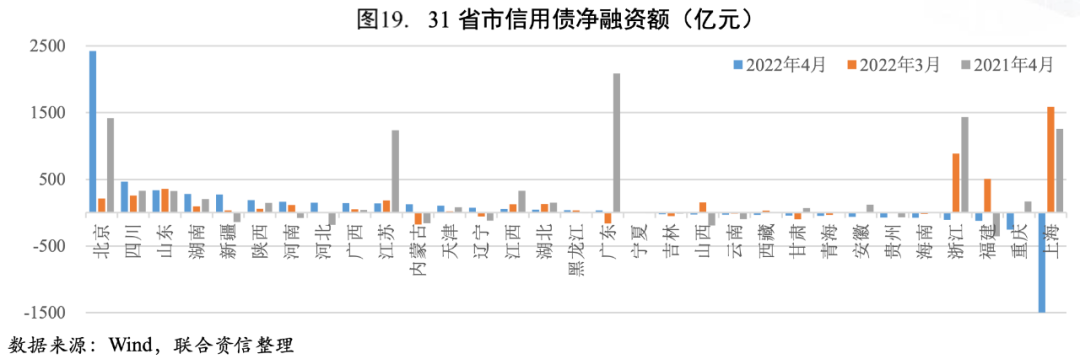 非金融企業(yè)債券凈融資規(guī)模總體平穩(wěn),結(jié)構(gòu)分化延續(xù)。4月企業(yè)部門信用債凈融資3479億元,較上月和上年同期分別少94億元、145億元,顯示企業(yè)債券凈融資規(guī)模總體平穩(wěn),但結(jié)構(gòu)分化延續(xù)。從大類結(jié)構(gòu)看,產(chǎn)業(yè)債凈融資額-1341.4億元,信用規(guī)模大幅收縮;城投債凈融資額1437.5億元,信用擴(kuò)張繼續(xù)放緩;從企業(yè)性質(zhì)看,國企債市場(chǎng)信用擴(kuò)張持續(xù)放緩,民企債市場(chǎng)信用收縮延續(xù);從區(qū)域結(jié)構(gòu)看,區(qū)域信用延續(xù)分化態(tài)勢(shì),上海、重慶、福建、浙江等省市信用收縮較為明顯。