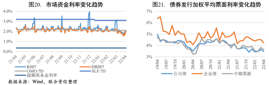 2022年4月,疫情對(duì)實(shí)體經(jīng)濟(jì)的影響進(jìn)一步顯現(xiàn),疊加房地產(chǎn)市場(chǎng)預(yù)期弱化、要素短缺及原材料等生產(chǎn)成本上漲等因素影響,居民消費(fèi)意愿和購房意愿依舊偏弱,企業(yè)經(jīng)營困難增多,有效融資需求明顯下降,社融總量與結(jié)構(gòu)雙雙走弱。央行綜合運(yùn)用多種貨幣政策工具,保持流動(dòng)性合理充裕,充分發(fā)揮貸款市場(chǎng)報(bào)價(jià)利率改革效能,發(fā)揮存款利率市場(chǎng)化調(diào)整機(jī)制作用,推動(dòng)降低企業(yè)綜合融資成本,著力改善信用環(huán)境。