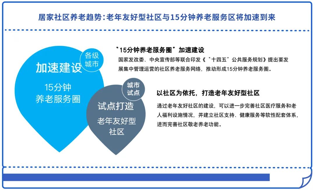 同時(shí),后疫情時(shí)代,居家社區(qū)養(yǎng)老也將迎來系統(tǒng)性解決方案,15分鐘養(yǎng)老服務(wù)圈+老年友好型社區(qū)建設(shè),將徹底激活居家社區(qū)養(yǎng)老服務(wù);健康理念融入住宅成為行業(yè)共識,健康住宅將會(huì)加速發(fā)展。