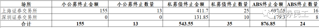 從私募債產品來看,單只債券最大終止金額為30億元,為蘭州建設投資(控股)集團有限公司2021年非公開發行公司債券和重慶邁瑞城市建設投資有限責任公司2021年面向專業投資者非公開發行短期公司債券。最小終止金額為4億元,為孝感市高創投資有限公司2021年面向專業投資者非公開發行項目收益專項公司債券。