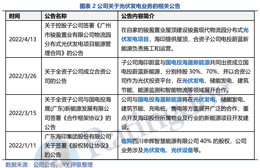 上周五收盤后(2022年5月14日)公司再度釋放利好,宣布已與國家電投集團廣東電力有限公司簽署《合作協議》,擬在廣州、江門、珠海、韶關等區域合作開發集中式光伏200MW、屋頂分布式光伏50MW等項目。