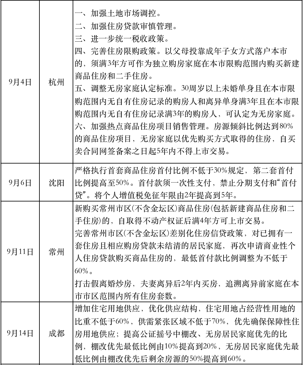 值得注意的是,三季度以來(lái),多個(gè)熱點(diǎn)城市出臺(tái)樓市調(diào)控背景下,樓市整體平穩(wěn)運(yùn)行,但三四線城市打補(bǔ)丁政策趨勢(shì)依然持續(xù),“房住不炒”全面升級(jí)。