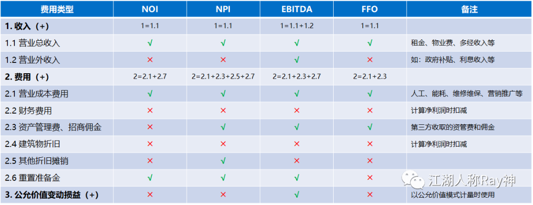 要靠增值來盈利,資產價值自然是重要的衡量指標。關于資產價值的評估方法有很多,前面講的是國際上資管領域最常用的收益還原法,是某一時間點不動產市場價值的體現。當然,估值方式還有市場比較法、重置成本法、現金流折現法等等——如果考慮貨幣時間價值的影響,那就需要考慮現金流折現,需要計算NPV了。