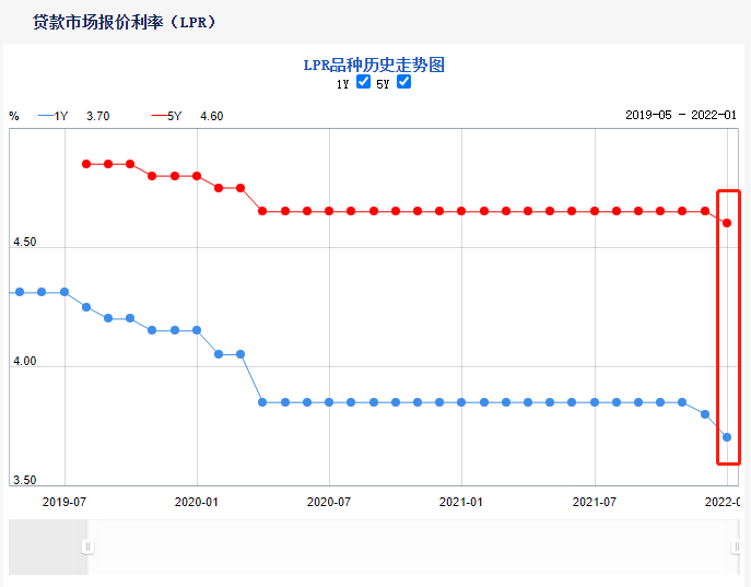2022年1月20日貸款市場報價利率為:1年期LPR為3.7%,5年期以上LPR為4.6%。