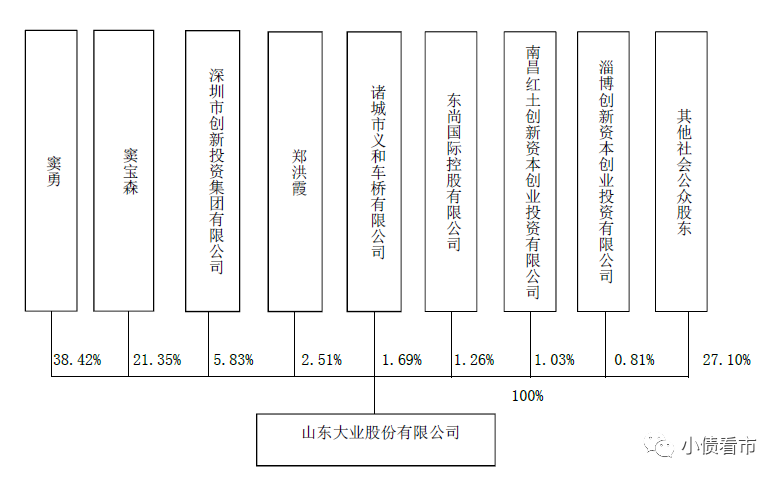 從股權結構看,大業股份的控股股東為自然人竇勇,持股比例為38.42%,公司實際控制人為竇寶森、竇勇父子,合計持有公司59.77%的股份。