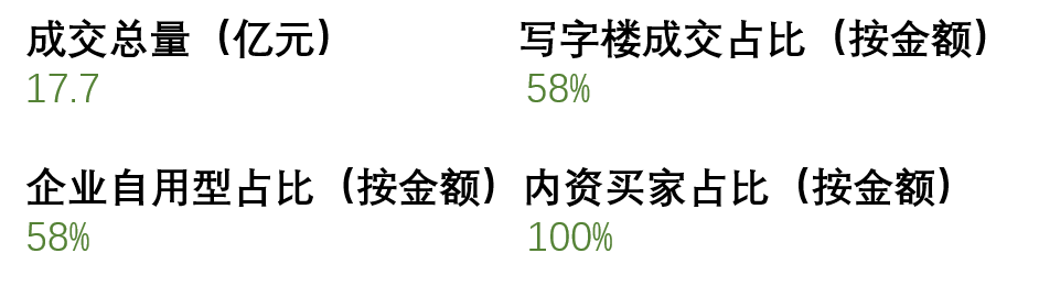自用企業購置辦公樓相較于投資更加活躍,占比達58%,某自用買家購置豐臺金茂廣場一棟寫字樓。核心區域的更新改造方興未艾,翰同資本收購奧體區域一座小型零售單體,后期將改造為辦公。
