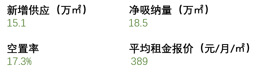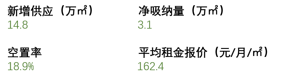 受互聯網頭部企業的收縮影響,季內整體市場活躍度有所放緩,凈吸納量環比下降55%至3.1萬平方米,空置率上調至18.9%。