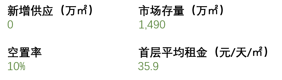 全市零售物業空置率進一步下降至10%,核心商圈運營成熟的項目租金穩健,業主通過引進更優質零售品牌實現業態和品牌結構升級,租金小幅上調,推動全市購物中心首層平均租金同樣本比環比上升0.4%至每天每平方米35.9元。