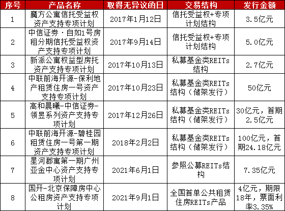 已發行租房ABS、REITs產品一覽表