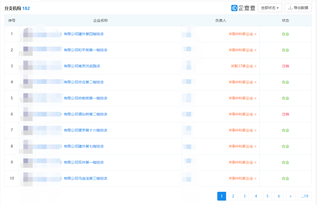 以某咖啡公司為例分析,僅某咖啡(北京)有限公司設(shè)立的分支機(jī)構(gòu)就有182家,在使用【通用】甄別初選后,還剩下100+的數(shù)量需要再做【專用】甄別,評(píng)估實(shí)際運(yùn)營(yíng)情況。