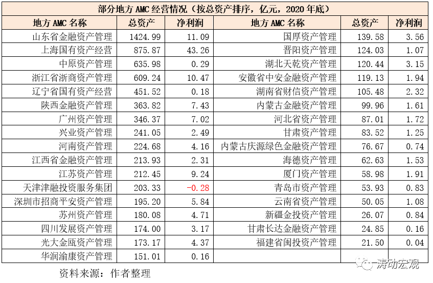2、此外僅有33家地方AMC公布了相關財務數據。截至2020年底,