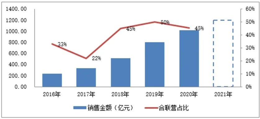 然而其中合聯(lián)營公司部分的銷售金額為460.93億元,占比45%
