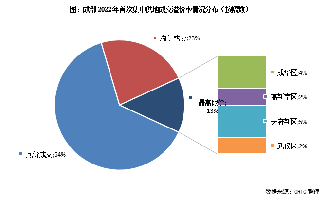 成都本次土拍成交的含宅用地整體溢價率為5%,但地塊的成交熱度分化明顯,6宗地塊觸及最高限價、搖號成交,同時還有過半地塊底價成交。