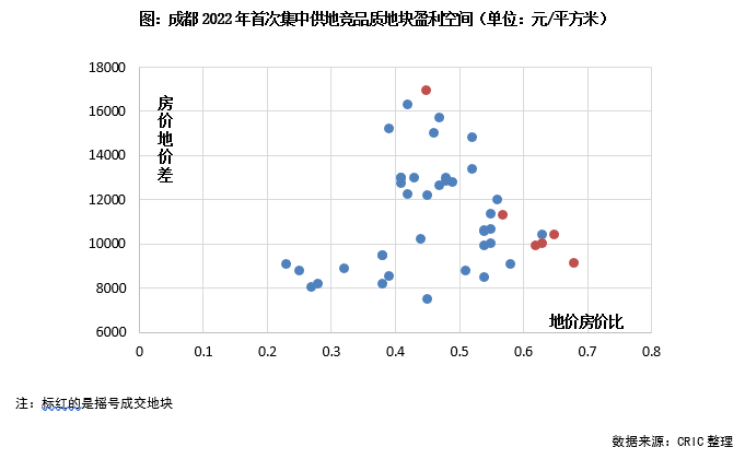 整體來看,在延續了土拍門檻降低的政策環境下,成都本次土拍表現較2021年第二、三輪有所回溫,但熱度漲幅并不明顯。在目前房企投資仍然謹慎之下,首輪土地市場冷熱不均也在清理之中。