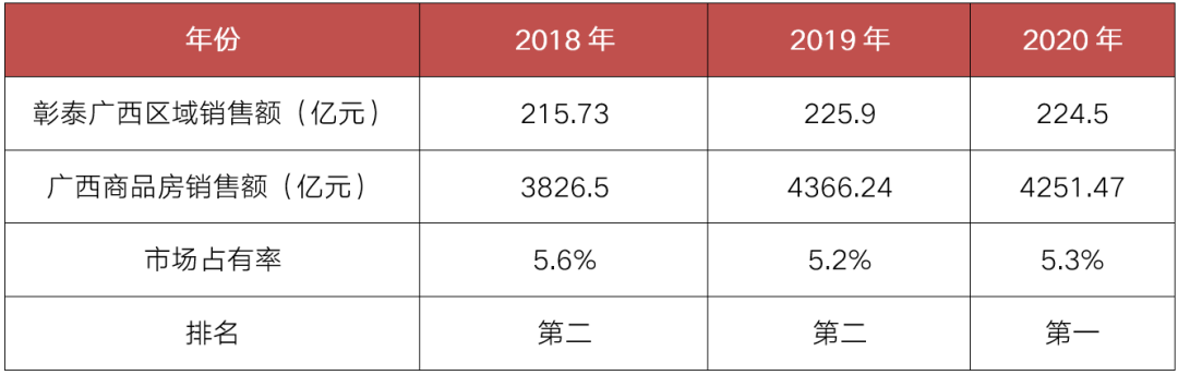 表:近三年彰泰在廣西的市場占有率