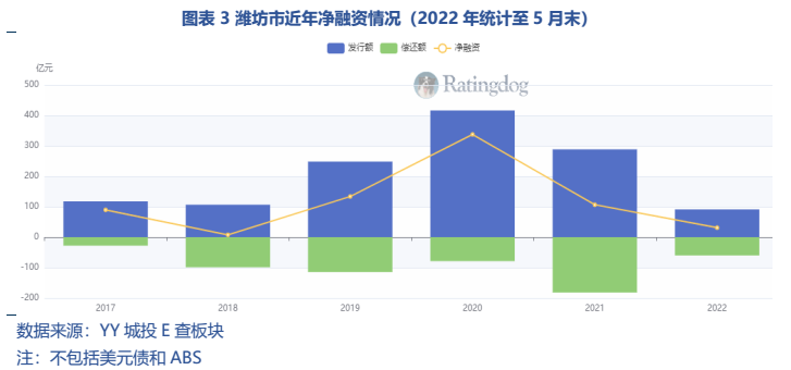 濰坊作為城投網(wǎng)紅城市,具體到數(shù)據(jù)層面的體現(xiàn)包括: