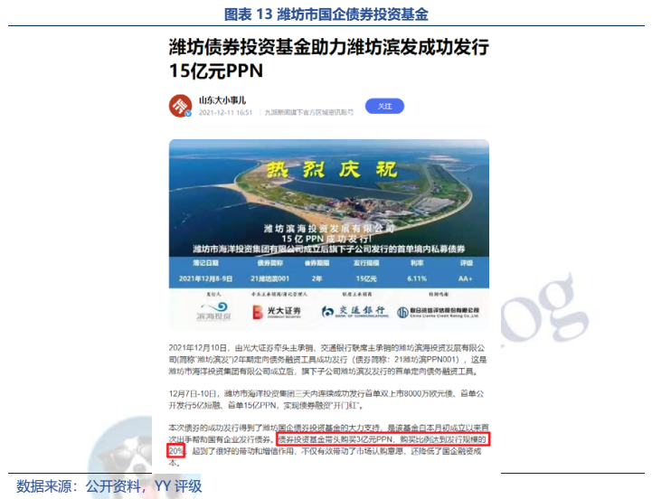 濰坊市政府也感受到了市場的擔(dān)憂,在21年10月召開了投資者大會(huì),試圖提振市場信心,提出設(shè)立50億元國企融資增信計(jì)劃和80億元國企債券投資基金的舉措,并很快在2021年12月做出了具體行動(dòng)。