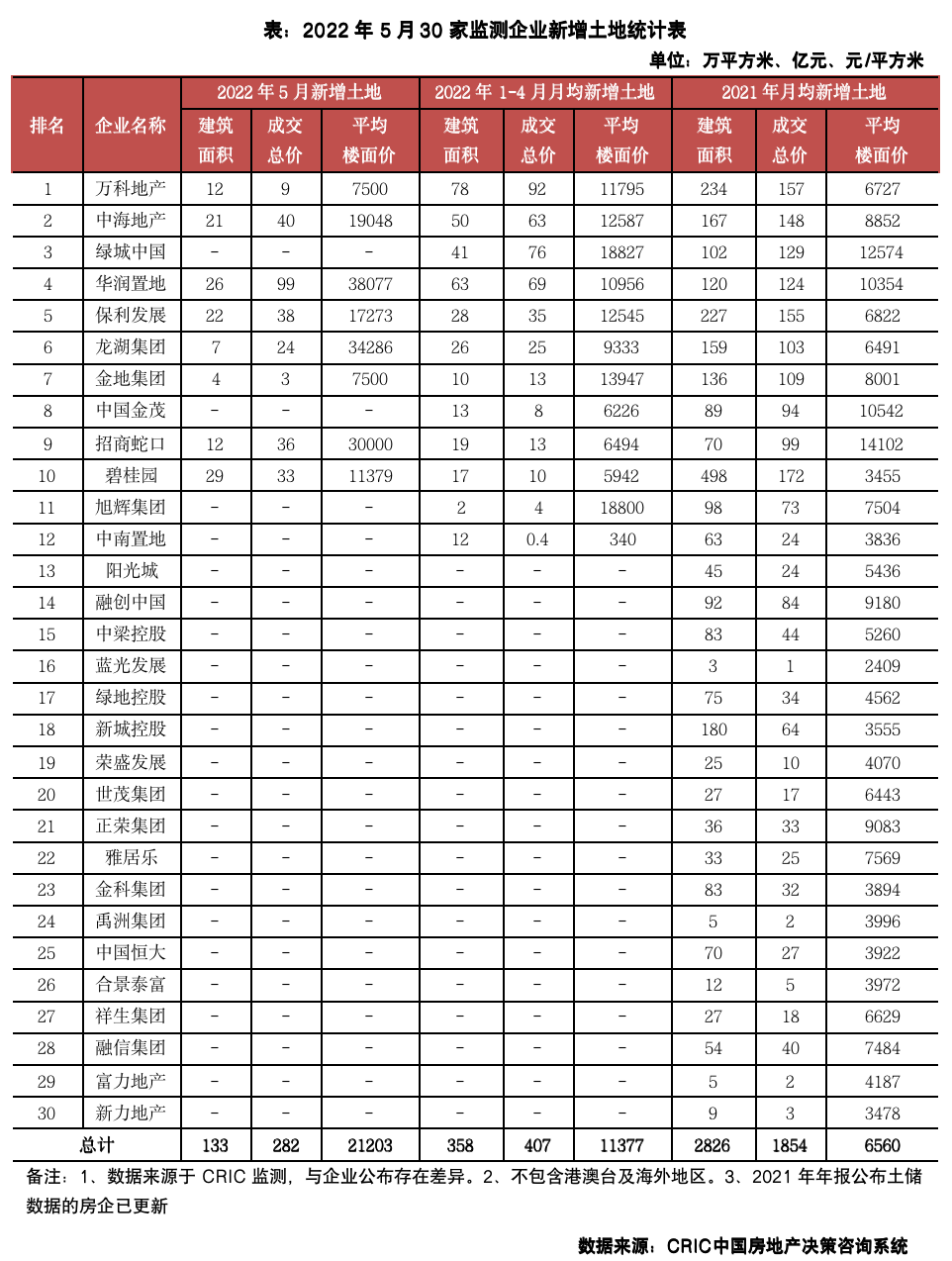 2、本月監(jiān)測房企中僅8家投資拿地,規(guī)模化國企、央企是主力,民企投資幾乎停滯。整體來看,30家重點監(jiān)測房企中,拿地依然是國企、央企等老面孔,僅龍湖、碧桂園等民企在5月份有投資動作。一方面是受到企業(yè)自身現(xiàn)金流影響,另一方面與廣州、北京、蘇州等土拍價格較高不無關系。