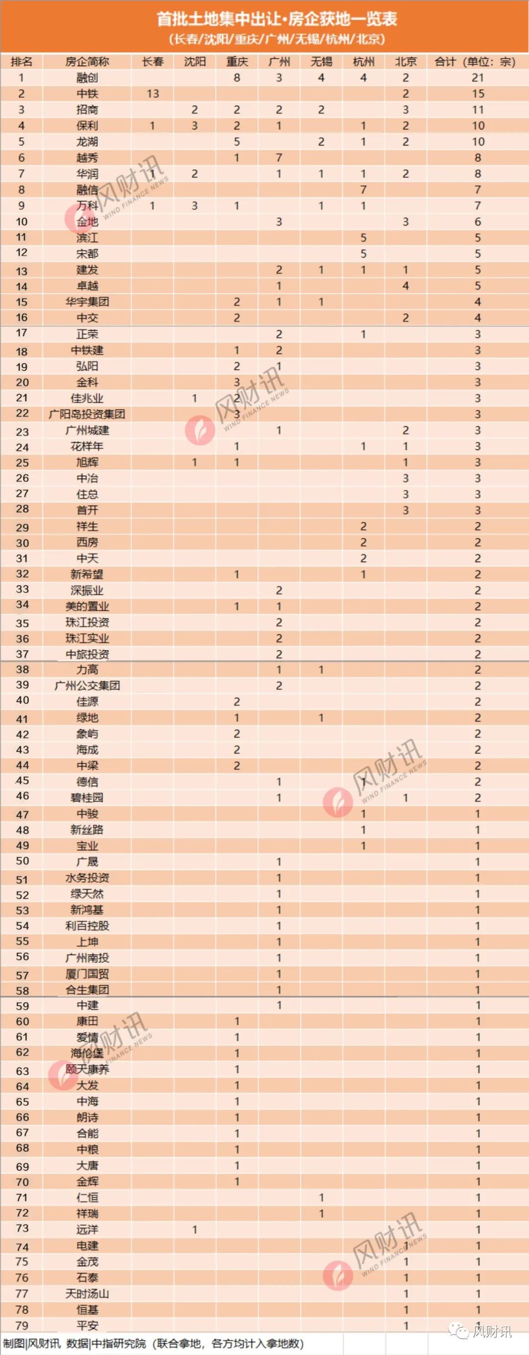 相反前期拿地較少的企業(yè),搶著在第一輪集中供地“補(bǔ)血”。比如融創(chuàng)。