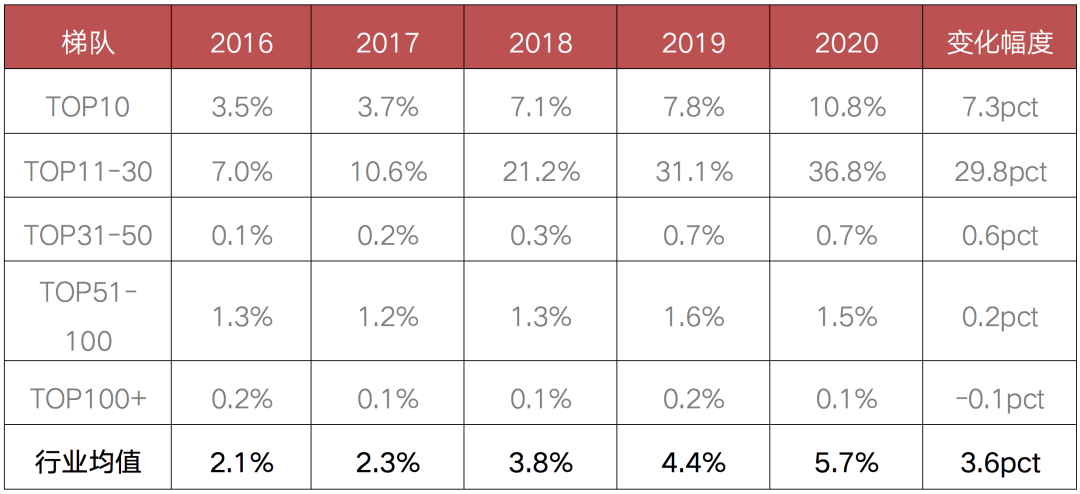 從趨勢上來看,TOP100梯隊房企對商票依賴度逐年提升,其中商票融資依賴度提升最快的當屬TOP30房企,2020年末TOP11-30和TOP10房企應付票據/有息負債分別較2016年提升29.8和7.3個百分點。