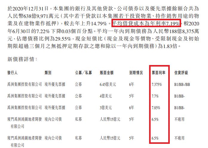 根據禹洲集團2020年的財報披露,2020年末,各種有息負債600多億元,比2019年末上升14.79%。