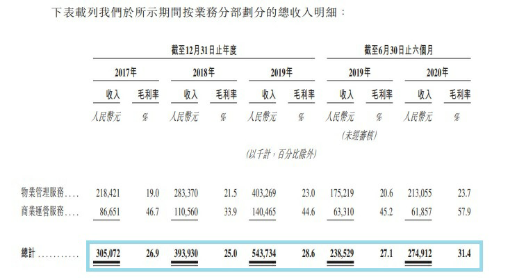 2017年禹佳生活服務收入3.05億元,2018年3.94億元,2019年5.44億元。復合增長率33.5%,還不錯。