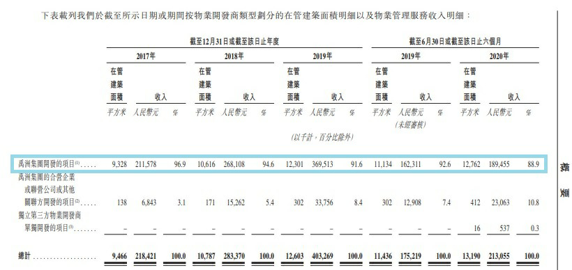 毫無疑問,禹佳生活服務管理的物業,截至6月有1300多萬平米,主要是禹洲集團開發的。如下圖。