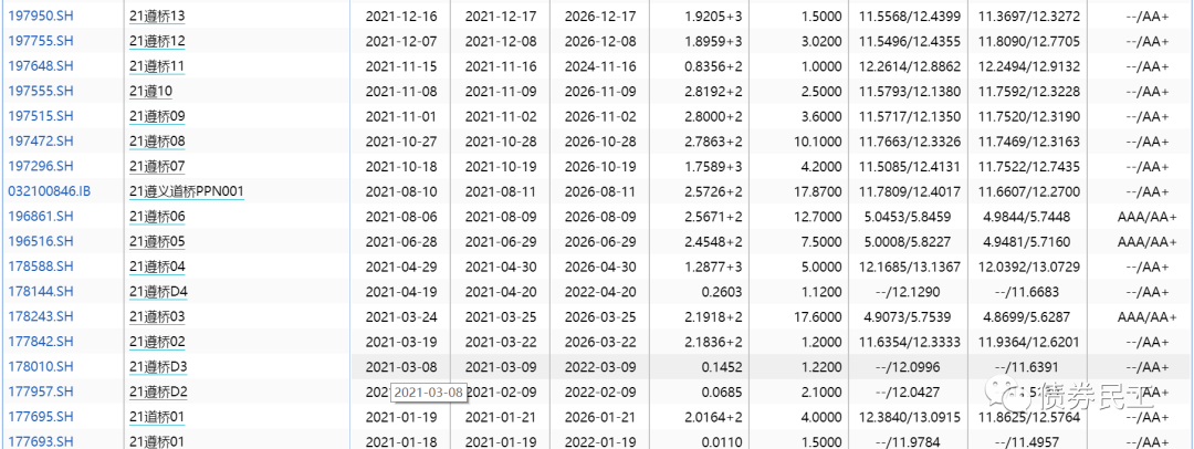 遵義道橋最近一次債券發(fā)行是在2022年1月6日發(fā)行,1月7日起息的“22遵橋01”,發(fā)行規(guī)模為1.69億元。值得關(guān)注的是,遵義道橋擬于2022年1月17日發(fā)行“22遵橋02”,這將是評(píng)級(jí)展望調(diào)整為負(fù)面之后的第一次債券發(fā)行。