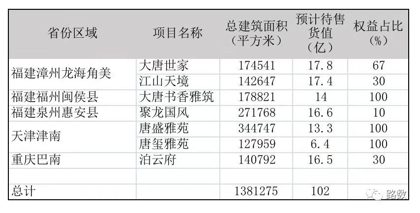 2020年,大唐地產(chǎn)約7成的銷售來自廣西和福建兩省。總項目(不包括零星土儲)102個,其中建筑面積在10萬方以上的項目72個。