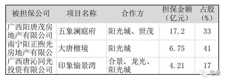 大唐地產(chǎn)對合聯(lián)營項目的擔(dān)保金額54億。擔(dān)保比例為68.29%,處于過高水平。