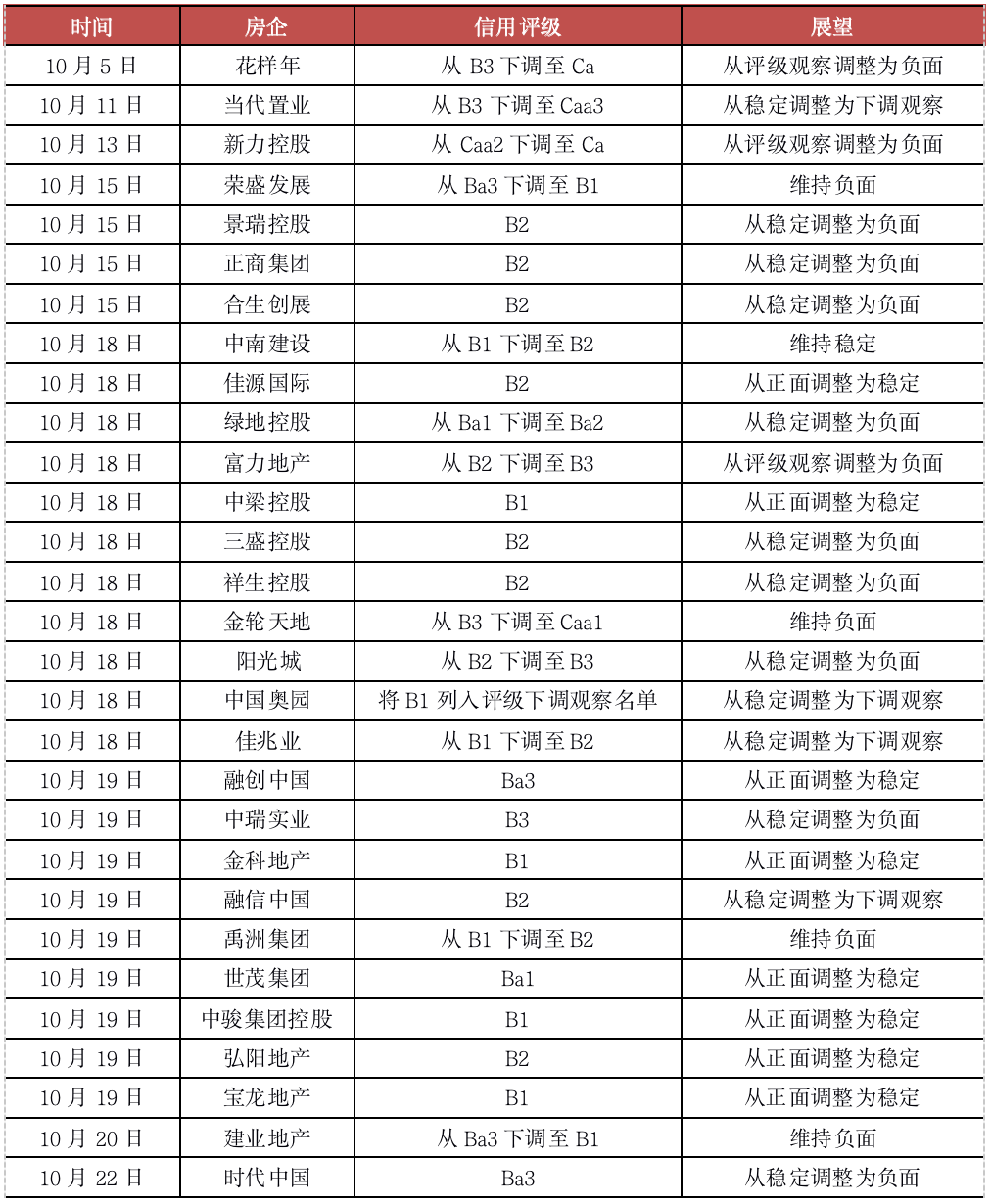 表:2021年10月穆迪集中下調房企評級及展望情況