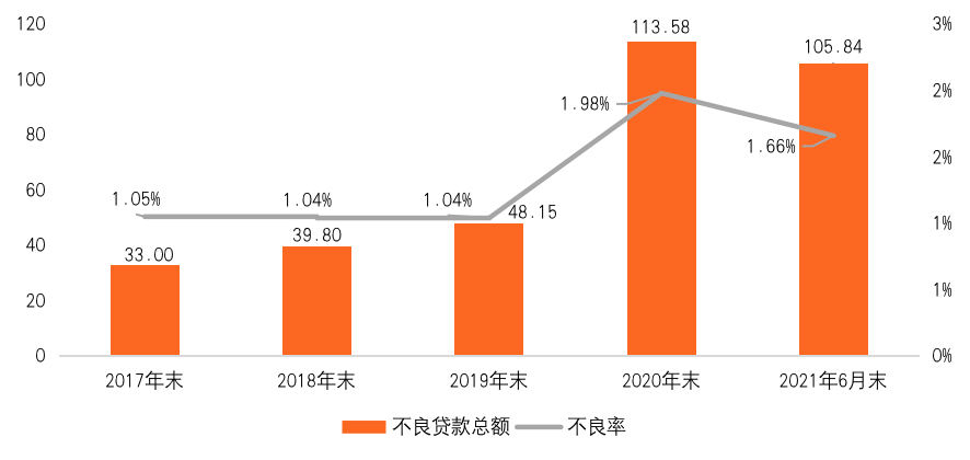 一、利潤(rùn)與資產(chǎn)質(zhì)量好轉(zhuǎn),個(gè)人房貸占比仍超標(biāo)(一)上半年歸母凈利潤(rùn)增長(zhǎng)18%,不良率降至1.66%2021上半年,徽商銀行的歸母凈利潤(rùn)繼續(xù)保持增長(zhǎng)態(tài)勢(shì)。從2017上半年的37.80億元增長(zhǎng)至2021上半年的61.95億元,5年間增幅超60%。從同比增速來(lái)看,除了受疫情影響的2020上半年增速僅為6.71%,其余各期的歸母凈利潤(rùn)增速均在10%以上,其中2021上半年增速高達(dá)18%,盈利能力在快速恢復(fù)。圖 2:徽商銀行2017上半年-2021上半年歸母凈利潤(rùn)情況(單位:億元,%)資料來(lái)源:徽商銀行2017-2021半年報(bào),零壹智庫(kù)整理與盈利能力一同恢復(fù)的還有資產(chǎn)質(zhì)量。由于承接了原包商銀行北京、深圳、成都、寧波四家分行的不良貸款,再疊加全球新冠疫情和安徽省特大洪澇災(zāi)害的影響,徽商銀行2020年貸款不良率陡升至1.98%。2021上半年,徽商銀行重點(diǎn)投身于風(fēng)險(xiǎn)防控,加快清收處置,不良率降至1.66%,較2020年末下降了0.32個(gè)百分點(diǎn)。然而,相較于2019年及以往年度的表現(xiàn),徽商銀行2021上半年的不良率仍處于較高水平,這也有銀行自身的原因。從貸款結(jié)構(gòu)來(lái)看,占貸款總額近六成的公司貸款不良率較高,2021上半年達(dá)到2.29%,而同期不良率僅為0.82%的零售貸款占比卻不足四成。此外,7月末,徽商銀行還因申請(qǐng)對(duì)紫光集團(tuán)破產(chǎn)重整而備受關(guān)注,高達(dá)70億元的債務(wù)違約也對(duì)該行的資產(chǎn)質(zhì)量造成較大沖擊。圖 3:徽商銀行2017-2021年不良貸款情況(單位:億元,%)資料來(lái)源:徽商銀行財(cái)報(bào),零壹智庫(kù)整理(二)零售存貸款規(guī)模擴(kuò)大,個(gè)人住房貸款占比超標(biāo)徽商銀行堅(jiān)持“服務(wù)地方經(jīng)濟(jì)、服務(wù)中小企業(yè)、服務(wù)廣大民眾”的市場(chǎng)定位,在零售業(yè)務(wù)上持續(xù)發(fā)力。零售存款及零售貸款余額持續(xù)穩(wěn)步增長(zhǎng),2021年上半年分別增長(zhǎng)了451.93億元和120.43億元,增幅分別達(dá)19.19%和5.47%。