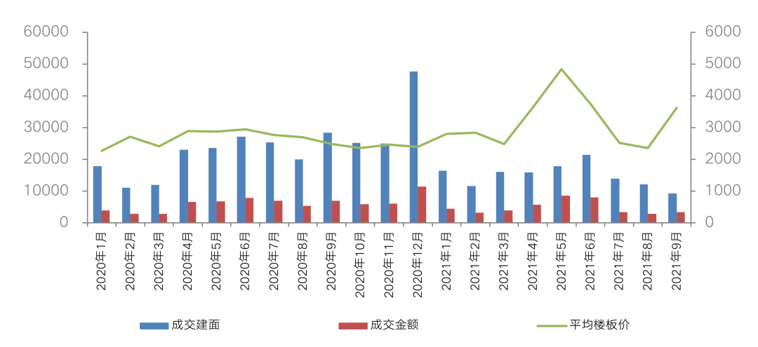圖:2021年以來前3季度經(jīng)營性土地成交量價