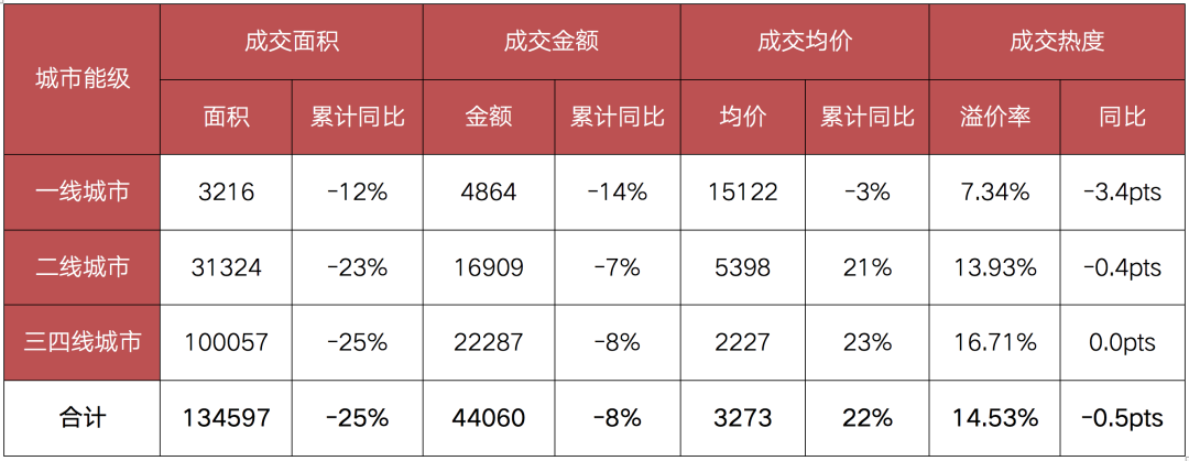 從前三季度土地成交情況來看,累計成交面積大幅下滑,成交金額也同比下降了8%,土地市場成交規(guī)模明顯萎縮。