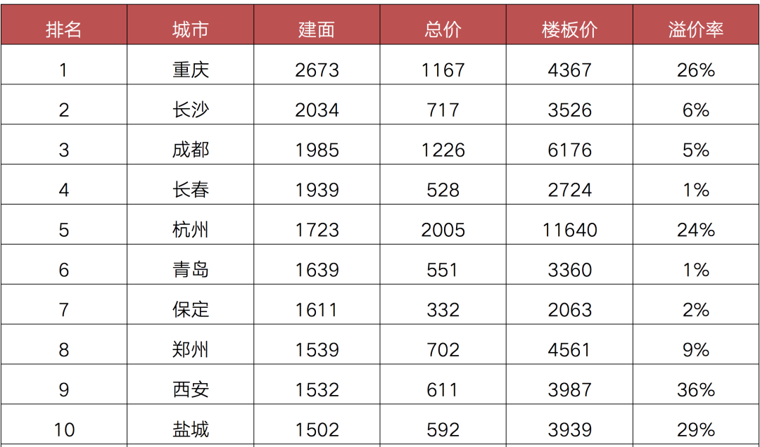 事實上,不只是重慶,長沙、成都等中西部城市前三季度的樓板價相比去年同期均有不同程度的上漲,主要是首輪集中土拍熱度較高,核心板塊宅地供應(yīng)明顯增加,帶動整體地價上漲。
