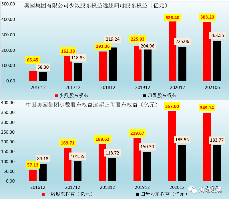 1、中國奧園是奧園系的源頭,而奧園集團則是中國奧園的絕對核心,其各項經營指標貢獻了中國奧園的95%左右。截至2021年6月底,中國奧園的總資產達到3161.55億元(奧園集團貢獻94%左右)、今年上半年分別實現(xiàn)營收和凈利潤326.53億元和17.40億元,而對應奧園集團分別實現(xiàn)營收和凈利潤317.76億元和37.97億元,優(yōu)于中國奧園。可以看出,今年上半年中國奧園貢獻的凈利潤遠小于其全資子公司奧園集團,甚至還不到奧園集團的一半,著實奇怪。