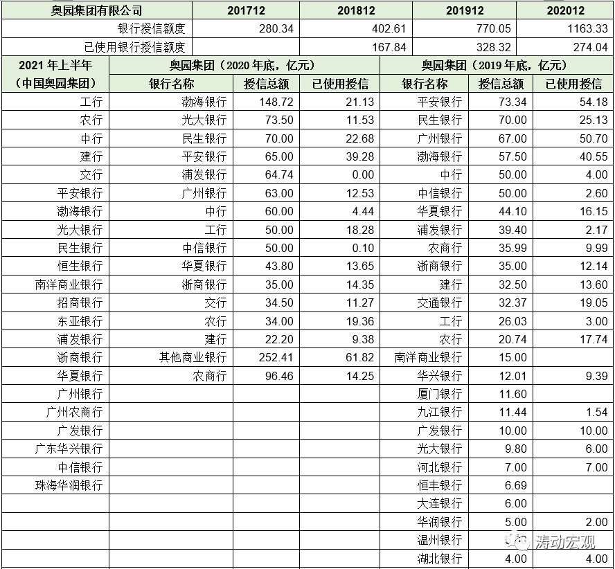 2、2020年以前奧園集團基本上會披露其往來銀行的授信額度和具體提用情況,不過2020年以來奧園披露的信息逐漸簡化,2020年未披露具體銀行的數(shù)量大幅減少,今年上半年則直接不披露授信金額、只披露往來銀行名稱。