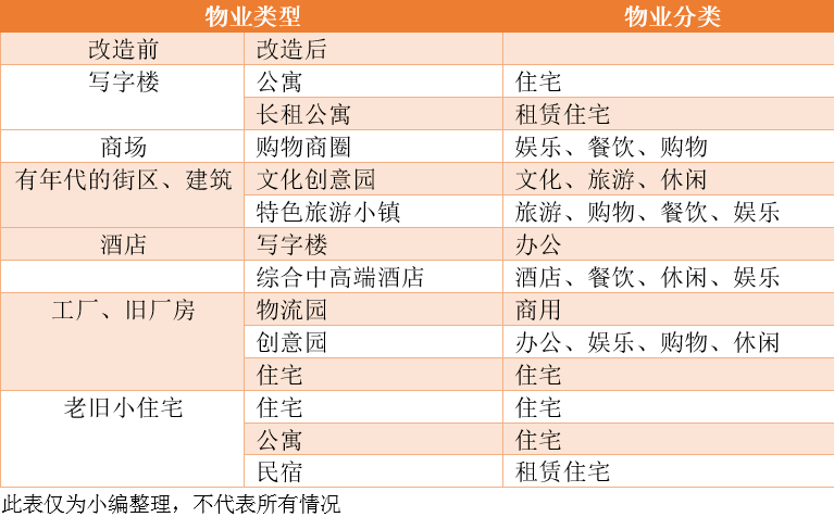下表列舉了幾種常見的物業轉化形式