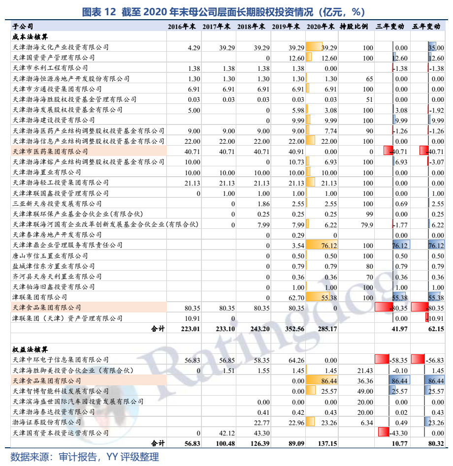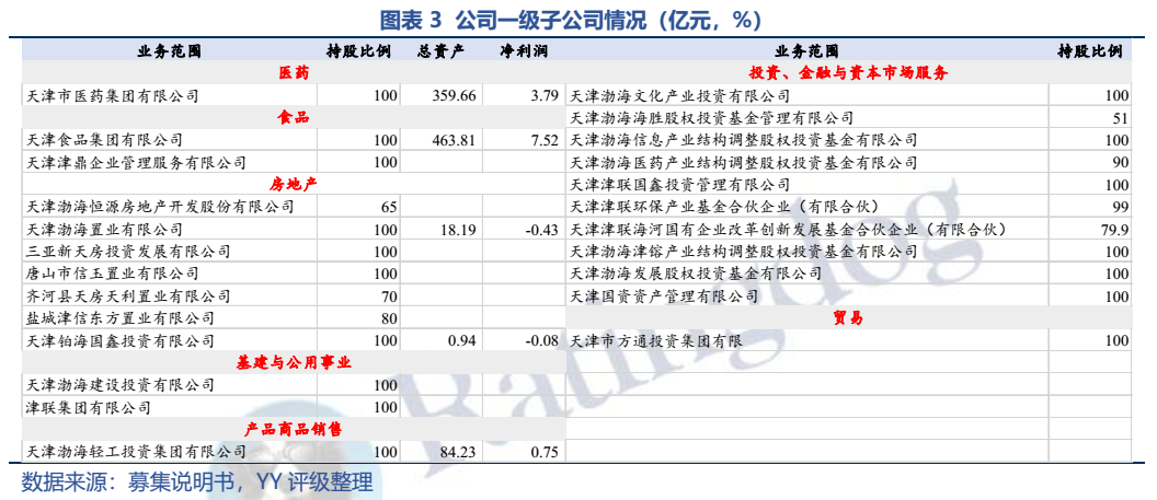 公司為天津市整合級國資運營平臺,子公司股權多依賴劃轉(zhuǎn)等,實際掌控力偏弱