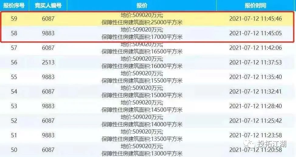 土地拍賣進行的前一個小時,大家都在按規則競價,一直競價到509020萬元。然后大家又花了一個小時競無償移交保障性住房,可能是萬科覺得這樣一直搞沒意思,想早點結束。在上午11時45分的時候,萬科突然加價,跳加了8000平米的無償移交,直接把無償移交保障性住房的面積,干到了25000平米,然后土拍結束了。