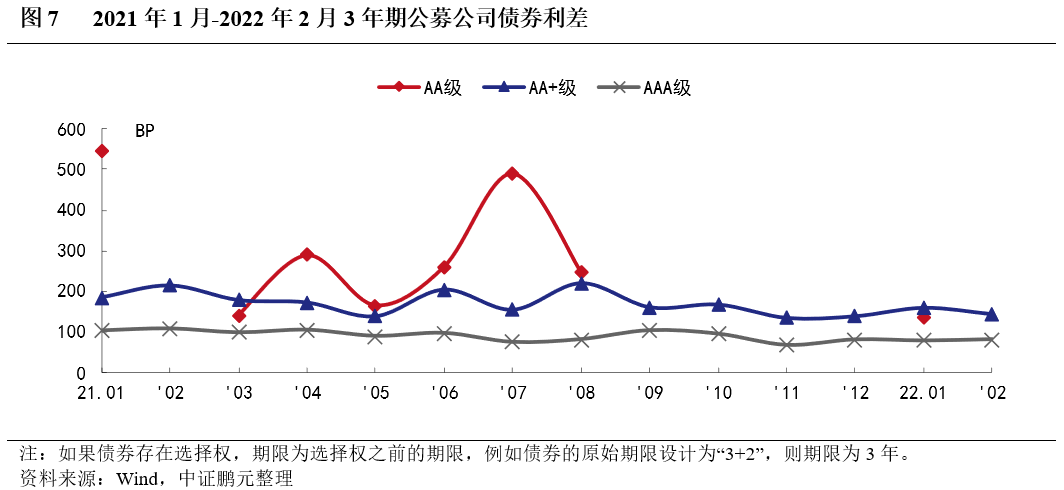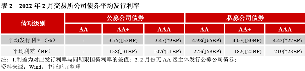 4. 2月份交易所公司債券AAA級利率上升、利差擴大;AA+級和AA級利率下降、利差收窄