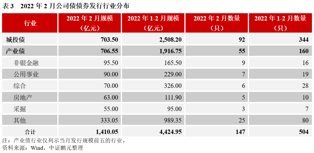 5. 2月份,城投債占比50%,產業債行業以非銀金融和公用年事業為主